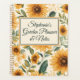 Ein lebendiger, handbemalteter Sonnenblumen-Blume-Designplaner für Gartenliebhaber. Das Design ist von einem eleganten Aquarell-Muster, das nahtlos durch goldgelbe Sonnenblumen und blaues grünes Blattwerk geprägt ist. Ein stilvoller, schicker Planer für Ihre Gartendenkmäler und Ideen . Alle Texte können nach Ihren Wünschen geändert werden.