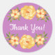 Gelbe Blumengrün-Blätter Lila Danke Runder Aufkleber
