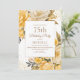 Mit dieser gelben, blumengeschmückten Einladung zum 75. Geburtstag erleben Sie Wärme und Freude. Mit Aquarellblüten in fröhlichen Farbtönen von goldgelb und elfenbeinfarben, mit funkelnden Imitaten goldenen Konfetti, dieses Design vereint Eleganz und Glück. Die zentrale Textbox zeigt das Meilenstein-Zeitalter und den Namen der Ehrenbürgerin in stilvoller Typografie und ist somit perfekt für die Ehre eines besonderen Liebsten. Eine helle und aufregende Wahl, diese Einladung kann für jeden Meilenstein Geburtstag angepasst werden.