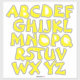 Gelbe Alphabet-Vinyl-Wandkleber mit durchsichtiger Decke. Ideal für Ihr Vorschulzimmer! Stell sie einfach aus ihrer Reichweite auf die Wand und lasse sie auf jeden Buchstaben zeigen, wenn du das Alphabet-Lied singst! Oder kaufen Sie ein paar verschiedene Farben, um ihren Namen und Botschaften an der Wand!