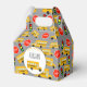 Gelbe Bushaltestelle der Schule Unterschreiben von Geschenkschachtel
