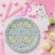 Gelbe Buttercups und blaues Irispapier Pappteller