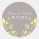 Süßes und süßes Butterfly Bläserndes Hochzeitskleber mit einem gedämpften, grauen Hintergrund, gelben Schmetterlingen und floralen Weindekorationen. Diese eleganten Hochzeitsaufkleber sind die perfekte Wahl für eine moderne und schicke Hochzeit. Einfach anzupassen, fügen Sie einfach die Details Ihres Hochzeitstages in den Textfeldern zur Verfügung gestellt. Klicken Sie auf den Button "Anpassen", um weitere Personalisierungsoptionen zu finden.