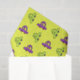 Gelbes Papiertaschentuch mit niedlichen grünen und lila Cartoon-Autos. Dekodiertes Projekt für ein Kinderzimmer.