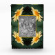 Durch die markante, gelbe, farbige Blume, die vor einem dunkelgrünen Hintergrund nah ist, fügt ein abstrakter Rahmen, der aus meinem originalen Foto erstellt wurde, Ihren eigenen Foto-Block hinzu. Blumenfotografie von Susan.