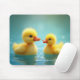 Gelbe Ducklings, die auf blauem Wasser schwimmen Mousepad