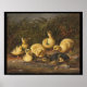 Vintager Druck von Entenlingen, die in einem Teich auf einer Wiese spielen.