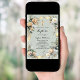 Ein schlauer grüner Hintergrund. Weiße und gelbe Blumen und ein goldenes Band. Ein goldenes Kreuz. Personalisieren und fügen Sie einen Namen und Details.