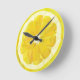 Gelbe, frische saure Zitronenscheibe, modern Runde Wanduhr