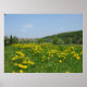 Gelbe Frühlingsblumen auf einer grünen Wiese Poster