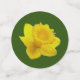 Ein helles und fröhliches Blumenmuster, das die Narzisse darstellt, eine klassische Frühlingsstiftung, die mit der Wiedergeburt und Neuanfängen verbunden ist. Das perfekte Thema für eine Frühjahrshochzeit, die aus gelben Narzissen in voller Blüte besteht, die auf einem grünen Garten-Hintergrund angeordnet sind. Text ist in einem Skriptstil, goldgelb in Farbe und ist leicht an die Namen, Daten und Orte Ihrer Wahl angepasst.