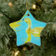 Gelbe Gänse mit hellblauem Wasser Keramik Ornament