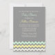 Personalisierte Babyduscheneinladungen im eleganten und modernen Gelb des hellen Sonnenscheins, in den hellen tadellosen grünen, dunklen Holzkohlengrau- und weißenretro Zickzack Pastellzickzacken stripes Muster. Kundengerecht mit Ihrem Text, treten Sie mit uns in Verbindung, um um eine Farbänderung zu bitten.