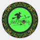 Gelbe grüne Happy Halloween Hexe und Fledermäuse Runder Aufkleber