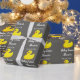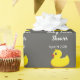 Packpapier mit gelbem Gummientenentwurf und mit einem Tafelblick. Jetzt besonders anzufertigen ist einfach, mit den Details Ihrer Babyparty. Lose zusammenpassende Einzelteile sind verfügbar.