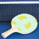 Gelbe Happy Bands auf aquamarinen Tischtennis Schläger
