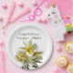 Plumeria Polterabend oder Verlobungsparty Papier Teller. Runde Teller haben eine Textzeile für Namen und / oder Glückwünsche. Blassgelbe Teller haben eine große Blume. Weiße Frangipani, oder Plumeria, Blume haben goldgelbe Zentren kombiniert mit Knospen, in diesem hübsch realistischen Blumendesign. Verwenden Sie für einen lässigen Polterabend, ein Probe-Dinner oder eine Verabredung.