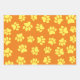 Zeichnungen von Hundepaw Drucke in gelb mit orangefarbenem Hintergrund. Maßgeschneidertes Packpapier. Geschenkpackidee für Hundefreunde.
