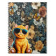 Gelbe Katze und Schmetterlinge im Blumenhintergrun Notizblock