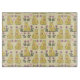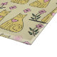 Gelbe Katzen als nahtloses Muster mit rosa Blumen und Herzen.
