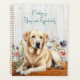 Gelber Lab-Planer zum Personalisieren auf dem Cover. Täglicher Planer für Hundeliebhaber mit rustikalem, hellem Holzd Design. Ein Name ist im Titel des Planers enthalten, der in dünner, blauer Schrift geschrieben ist. Wählen Sie eine Größe, mit hartem oder weichem Cover.