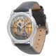 Uhr, Klassische Damenuhr mit schwarzen Lederarmband