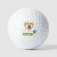 Ein süßer Weg für Hundefreunde, ihre Unterstützung für die Ukraine zu zeigen. Golf Ball Design bietet Aquarellgelb Labrador Retriever Hundeschild mit "Ukraine" Text und Schmetterling in den blau und gelb Farben ihrer nationalen Flagge.