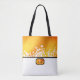 Sie werden die eleganteste mit diesem sehr schicken und sonnigen Totbeutel, das Rampenlicht der Raffinesse. Der obere Teil ist mit zauberhaften, gelb-orangefarbenen Gräbern geschmückt, auf denen zarte weiße Silhouetten von Blume tanzen und der Wärme und Vitalität eine Touch von Laune und Charme verleihen. Der untere Teil zeigt elegant Ihren Vor- und Nachnamen, der anfänglich subtil ineinander übergeht. Die ultimative Verschmelzung von Mode und Personalisierung macht jeden Schritt, den Sie machen eine Erklärung des Stils.