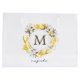 Eleganter und sanfter Kranz Magnolia blühen Aquarellkunst in weiß und gelb und ein Monogramm. Ein schönes Blumendesign. Personalisieren Sie das Monogramm und den Text.
