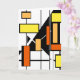 Ein zeitgenössischer und heller Look, um mit Ihren Gedanken und Gefühlen zu sprechen und sie auszudrücken. Frische, geometrische Formen, insbesondere Boxen, Linien in lebhaftem Gelb, Orange- und Schwarztönen vereinen sich auf weißem Hintergrund und schaffen ein abstraktes Design, das an den modernen Stil des Mittelalters erinnert. Das Innere der Karte ist für Ihre personalisierte Botschaft ganz weiß.