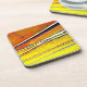 Abstrakte Sicht auf mehrere konvergierende Straßenbahnlinien an der Monstersestraat, Den Haag, Niederlande. Invertiert und digital verstärkt in Gelb- und Orangetönen. Aus der KyG Kollektion Abstrakt und Texturen.