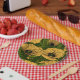 Gelbe Pfeffer auf dunkelgrün Pappteller