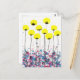 Dieser Artikel ist eine Postkarte mit meinem Aquarellbild von gelben Blumen. Sie sind ein abstraktes Mohnfeld. Eine sonnige Ecke des Gartens. Von meinem Original-Kunstwerk. Die Farben Gelb, Rosa und Aqua
