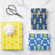 Gelbe Pickleball-Balls auf blau-weiß Geschenkpapier Set