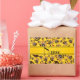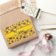 Niedlicher, gelber Piratenhintergrund mit roten Fahnen, rot-weiß gestreiften Fahnen und schwarzen Schädelflaggen auf einem gelben Streifen schwarzen Streifen personalisiert mit Ihrem Namen Geschenke. Ideal für Kinder, Jungen und Mädchen. Geschenkideen für Piraten.