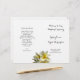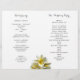 Gefaltetes Hochzeitsprogramm mit gelbem Blume-Design. Ecru Farbe mit schwarzen Vorlagen auf vier Seiten - wenn gefaltet. Auf beiden Seiten dieses 8,5 x 11-Zoll-Papiers wird Text mit optionalen Upgrades gedruckt, um ein gefaltetes Programm pro Blatt zu erstellen. Die Titelseite hat den Titel, die vollständigen Namen des Paares und einen Ort für Datum, Uhrzeit und Ort der Feier. Fügen Sie einen Absatz, um Familie und Freunden zu danken, die auf der Rückseite des Programms erscheinen. Dreh die Zeitung und erstelle zwei Textspalten für "die Zeremonie" oder "Reihenfolge der Zeremonie", und Liste "die Hochzeitsfeier".