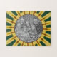 Gelbe und braune abstrakte Rochen-Gestaltung mit Aura-Ausstrahlungsrahmen kreieren Ihr eigenes Foto-Puzzle. Design von Susan.