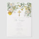 Ein wunderschönes Design mit gelben und weißen Aquarellfarben-Blume und Goldkreuz. Ein religiöses Design, ideal für die Taufe eines kleinen Jungen. In der Kollektion dieses Designs kann man die passende Schreibwaren und Dekoration bewundern.