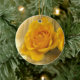 Dieses hübsche Urlaubsornament besticht durch eine ruhige Lebenszusammensetzung einer erlesenen gelben Rose auf beigem Hintergrund. Die Blütenblätter reichen von hellgelb über gold bis tief orange.
