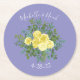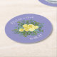 Gelbe Rose & Lila Periwinkle Hochzeit Runder Pappuntersetzer
