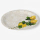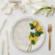 Gelbe Rosen beugen weiße Spitze über Elfenbein-Papier-Teller