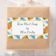 Ein benutzerdefiniertes Konserven- oder Seifenlabel mit einem hübschen Vintagen Blumenmuster aus gelben Rosen und blauen Vergessen-Me-Not-Blume auf weißem Hintergrund. Klicken Sie auf Anpassen, um Ihre benutzerdefinierte Nachricht hinzuzufügen, Hintergrundfarben zu ändern und mehr.