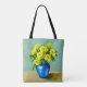 Tote-Tasche in einer Boho Kunstillustrierung gelber Rosen in einer blauen Keramik Vase