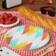 Gelbe, rote und kadettenblaue Dreiecke Pappteller
