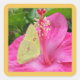 Gelbe Schmetterling und rosa Blume, viereckiger Au Quadratischer Aufkleber