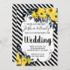 Set die Bühne für Ihre Hochzeit mit der gelben blühenden schwarzen Streifen Hochzeit Einladung. Diese Einladung verbindet die zeitlose Eleganz der schwarzen Streifen mit der fröhlichen Dynamik der gelben Blumen und schafft einen markanten Kontrast, der modern und elegant zugleich ist. Ideal für Paare, die einen klassischen Stil mit einer frischen, lebendigen Drehung gewollt haben, verlasst dieses Design Ihren Gästen einen bleibenden Eindruck. Lass deinen Hochzeitstag strahlt mit der gleichen Wärme und Schönheit aus, die diese einmalige Einladung mit sich bringt und macht jeden Augenblick unvergesslich.