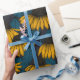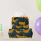 Gelbe Sitzbänke in dunkelblau Geschenkpapier