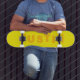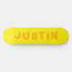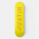 Für ihn, für sie oder für sie ist das einfache gelbe Skateboard Ihr personalisierter Name in einem fetten, funky und grunge bedrückten Buchstaben. Das perfekte abstrakte Design für einen Teenager-Geburtstag oder ein Weihnachtsgeschenk. Schreiben Sie einfach Ihren eigenen Namen für ein individuelles Skateboard.