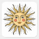 Gelbe Sonne mit Gesicht Quadratischer Aufkleber