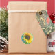 Hübsche Aufkleber mit einer sonnengelben, in Aquarellfarben gestrichenen Sonnenblume mit einem weichen aquablauen Hintergrund.